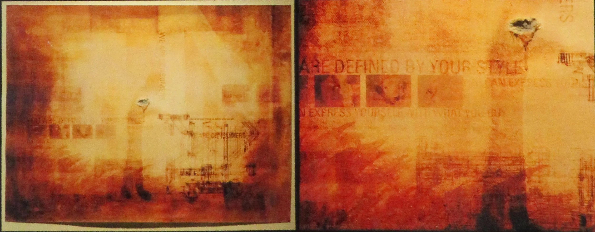 The canvas prints continue these themes exploring how these beliefs formed, and some of the canvas prints include tears in the surface—revealing a truth underneath the misleading messages that I feel have fostered our harmful beliefs.