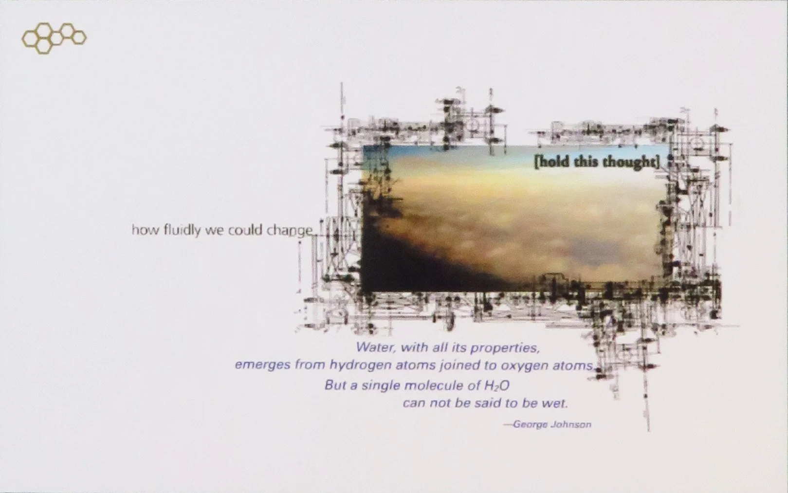 This question led me through religions, sciences, philosophies, governments, economics, technologies, environmentalism, activism and the arts. As I worked to cull out certain threads, I created a multi-page interactive, animated digital projection, several digital prints on canvas, and some three-dimensional elements for display in my MFA thesis exhibition.